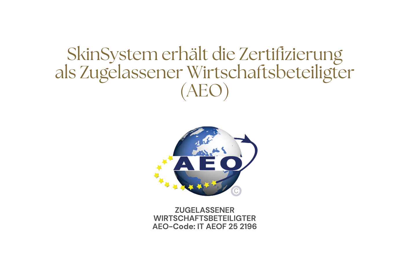 SkinSystem erhält die Zertifizierung als Zugelassener Wirtschaftsbeteiligter (AEO)